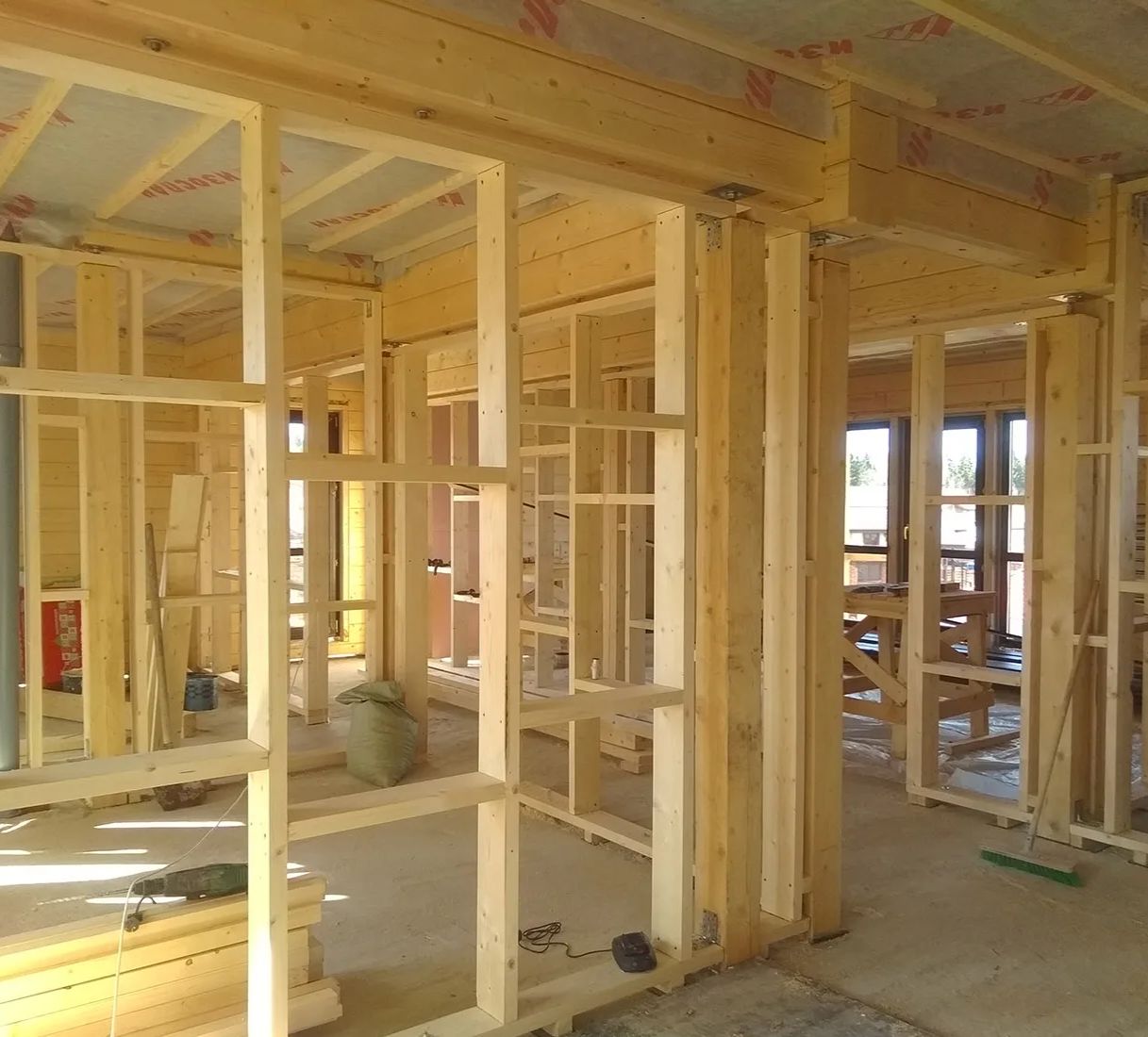 Отделочные работы-Окна, двери, чистовые полы и лестница не входят в стоимость и монтируются после усадки дома.
